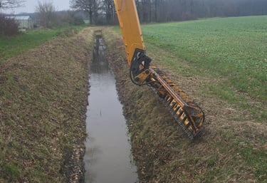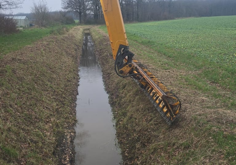 Efficiënt maaien van sloten om uw terrein netjes en veilig te houden, met onze expertise.
